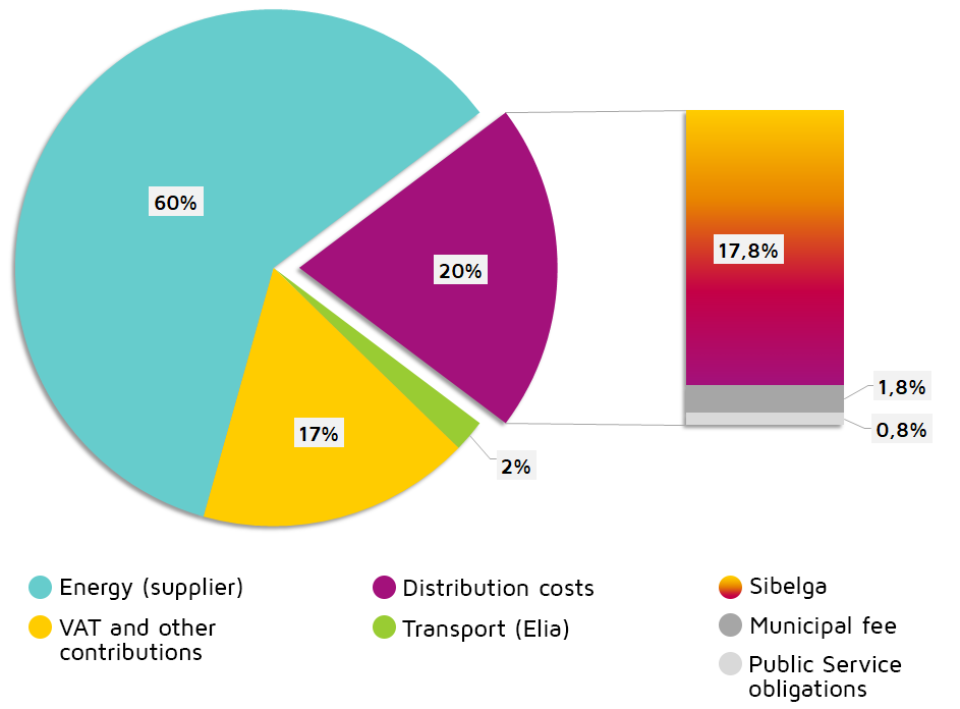 The distribution cost included in your bill covers not only the actual distribution cost, but also other costs that Sibelga has to collect and pass on to the relevant parties.