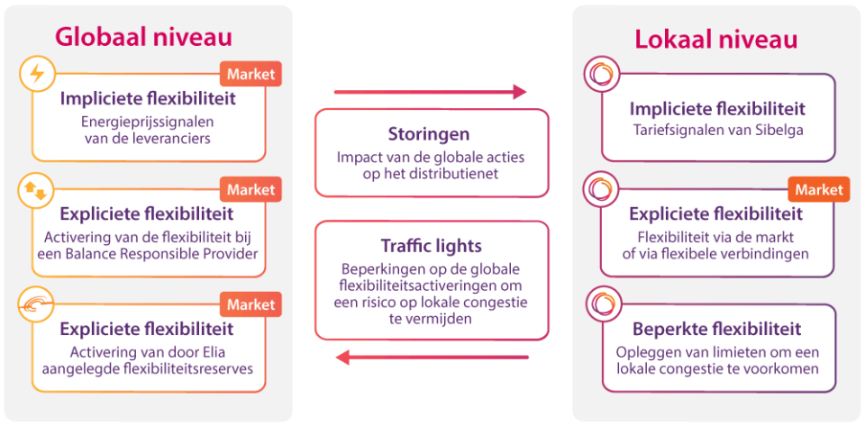 Door de activering van de expliciete flexibiliteit dreigen veel gebruikers hun elektriciteitsverbruik of -productie tegelijkertijd te wijzigen. Dat zou het lokale net kunnen overbelasten. Dynamische signaalsystemen of 'traffic lights' moeten dat tegengaan. Die systemen zullen geleidelijk aan de statische netstudies vervangen die oorspronkelijk ontworpen waren om de hoogspanning te beheren. Deze signalen zullen aangeven of de marktspelers hun flexibiliteit kunnen activeren zonder een lokaal probleem te creëren.